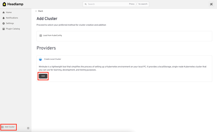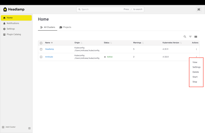 Headlamp removes that friction with Local Cluster. You can create and manage a fully functional Kubernetes cluster right from the Headlamp UI. No terminal. No cloud provider. Click to start, experiment safely, and get feedback fast in a graphical and intuitive way.